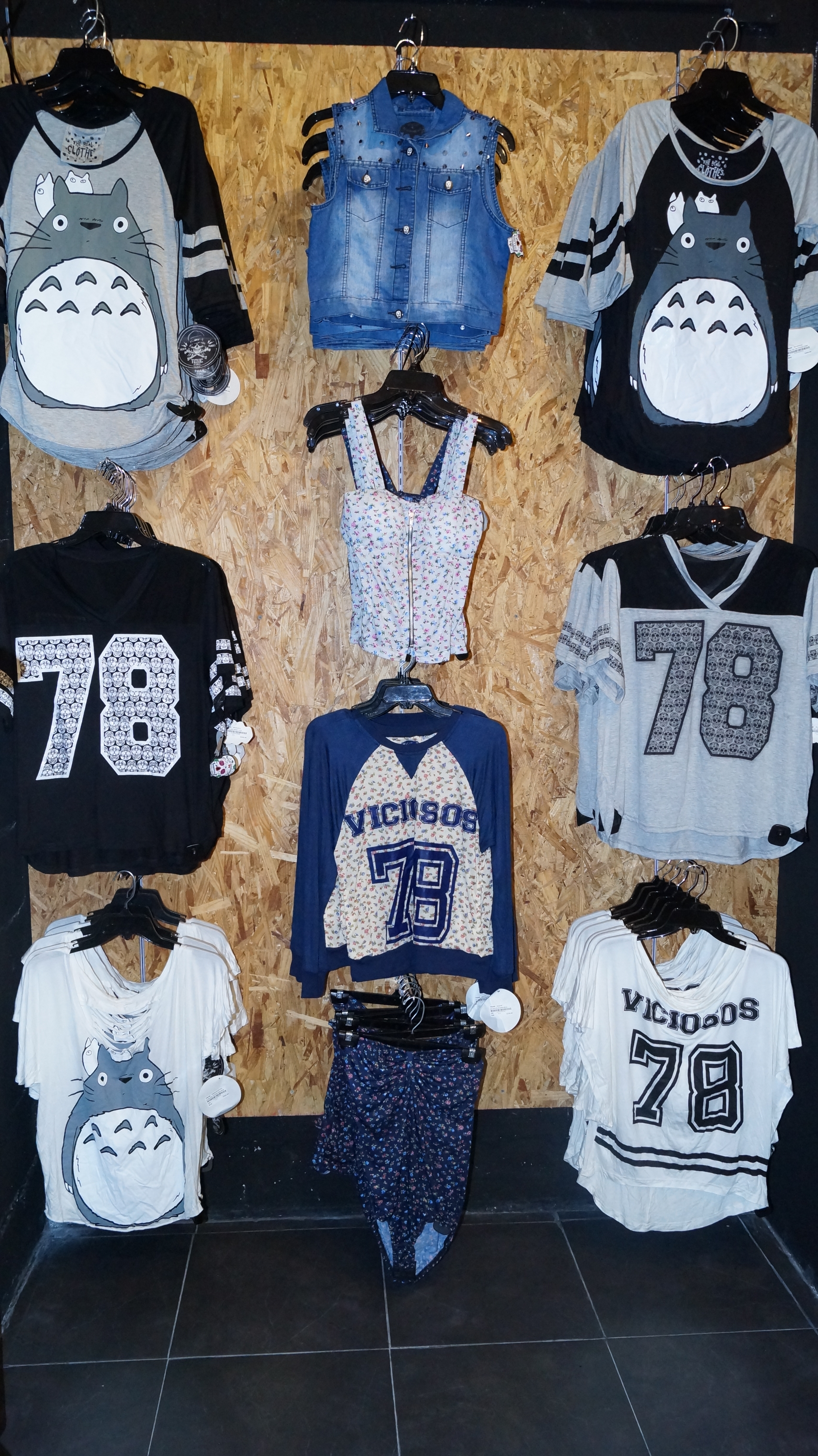 Playeras, Sudaderas y Gorras con Estampados de bandas Famosas (Rolling Stone, Joy Division , Red Hot Chilli Papers, Kiss, entre otras), craneos, cruces, marcas reconocidas, super héroes e imagenes de Totoro, Pantalones, Mochilas y Patinetas es un poco de lo que podemos encontrar en este lugar.