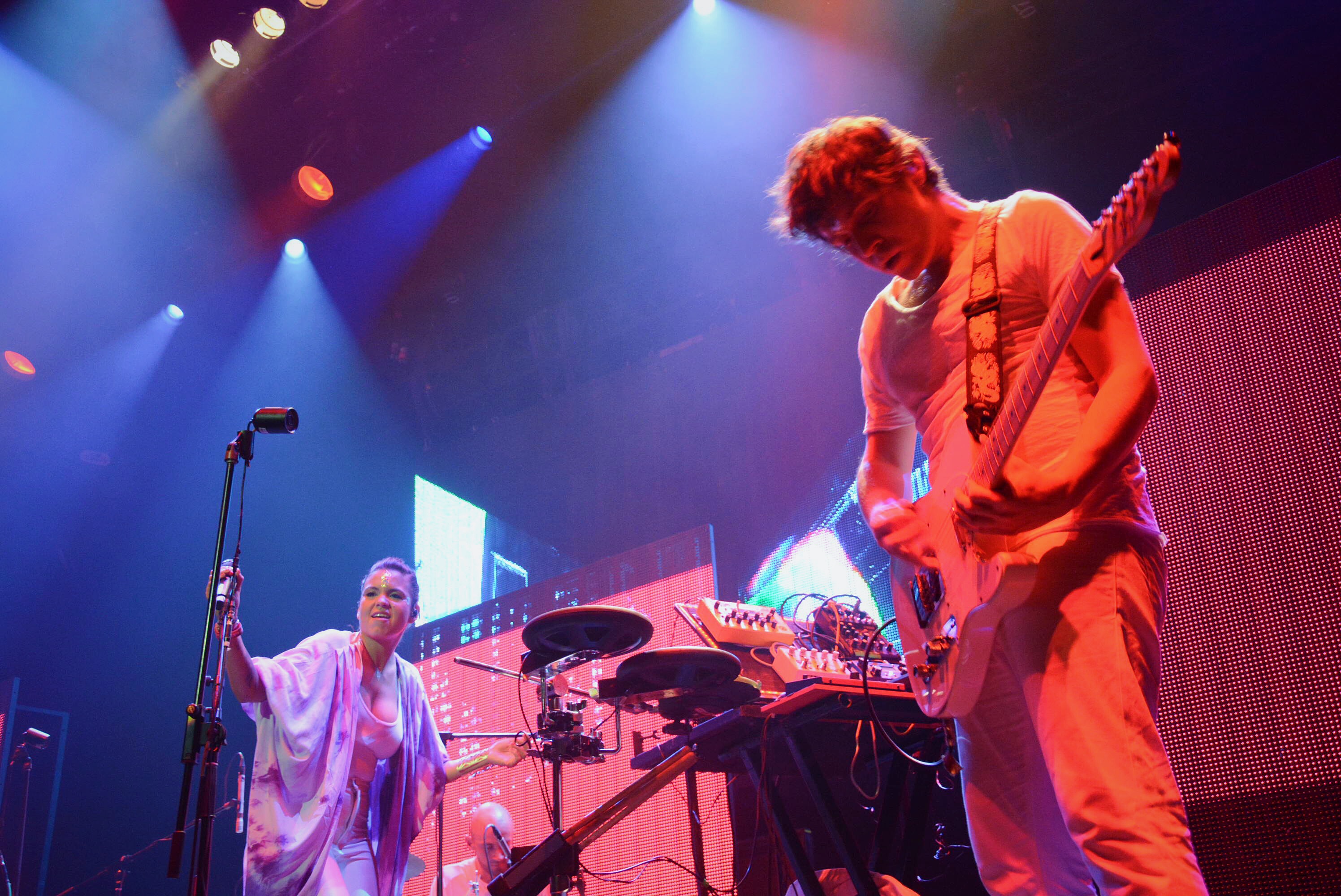 Pese a la lluvia la gente no dejaba de llegar a El Plaza Condesa @El_Plaza_ , lugar que se encontraba lleno a comparación de la vez anterior que se presentó la banda, sólo que en esta ocasión estrenando baterista, con una producción más madura, visuales que adornaban el escenario y un sonido más electrónico, lo cual reflejaba una evolución, sin dejar su estilo característico y peculiar.