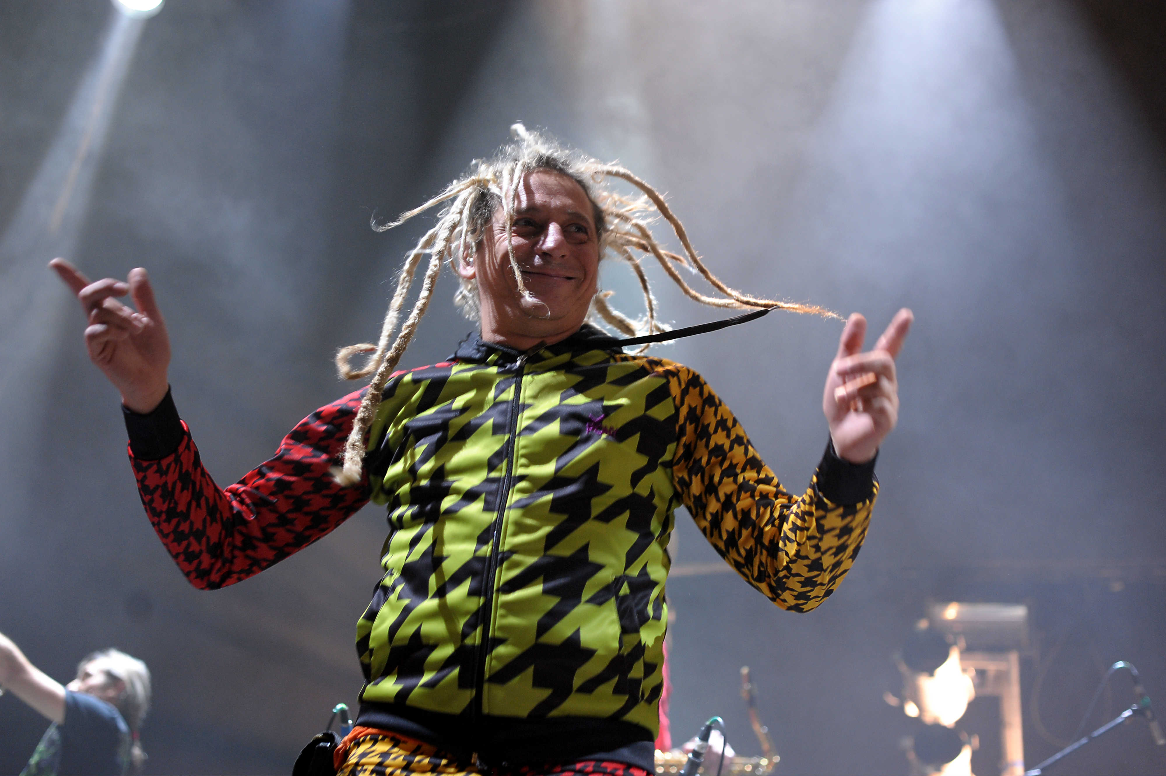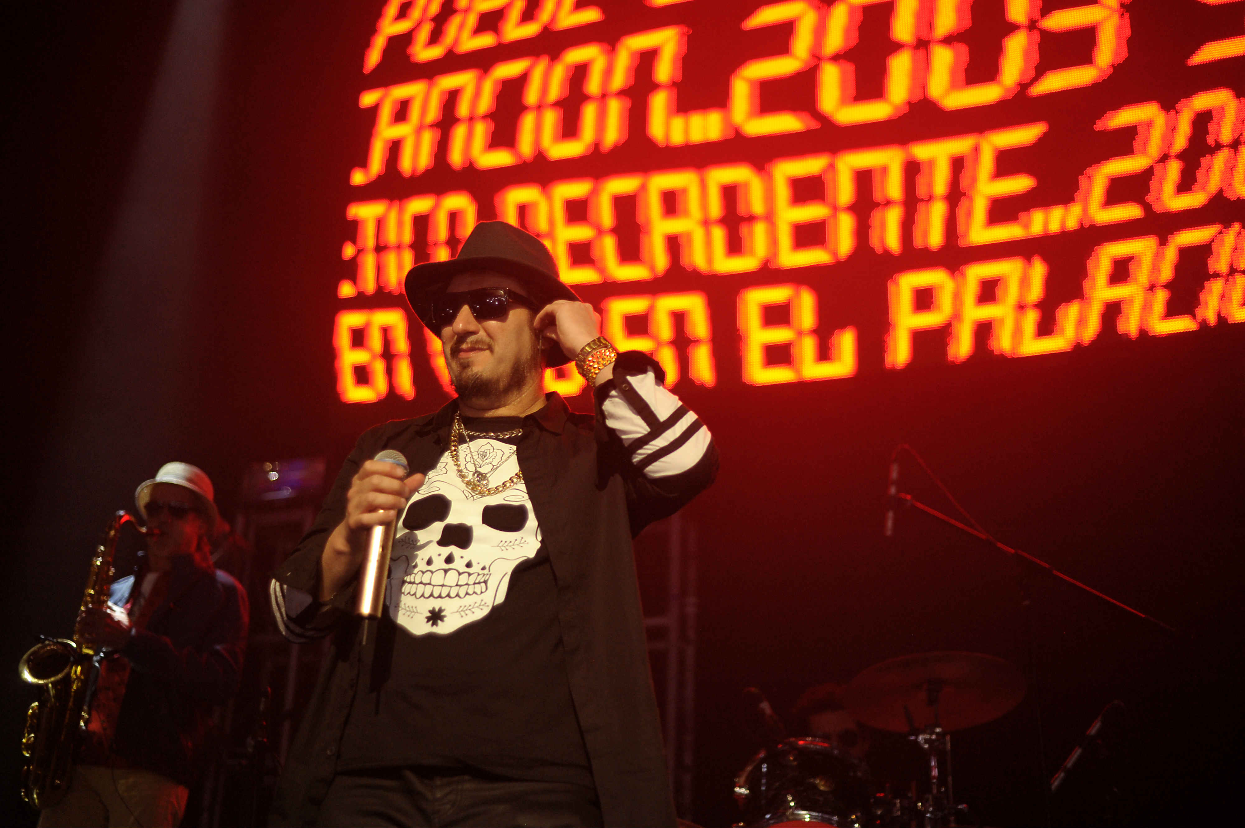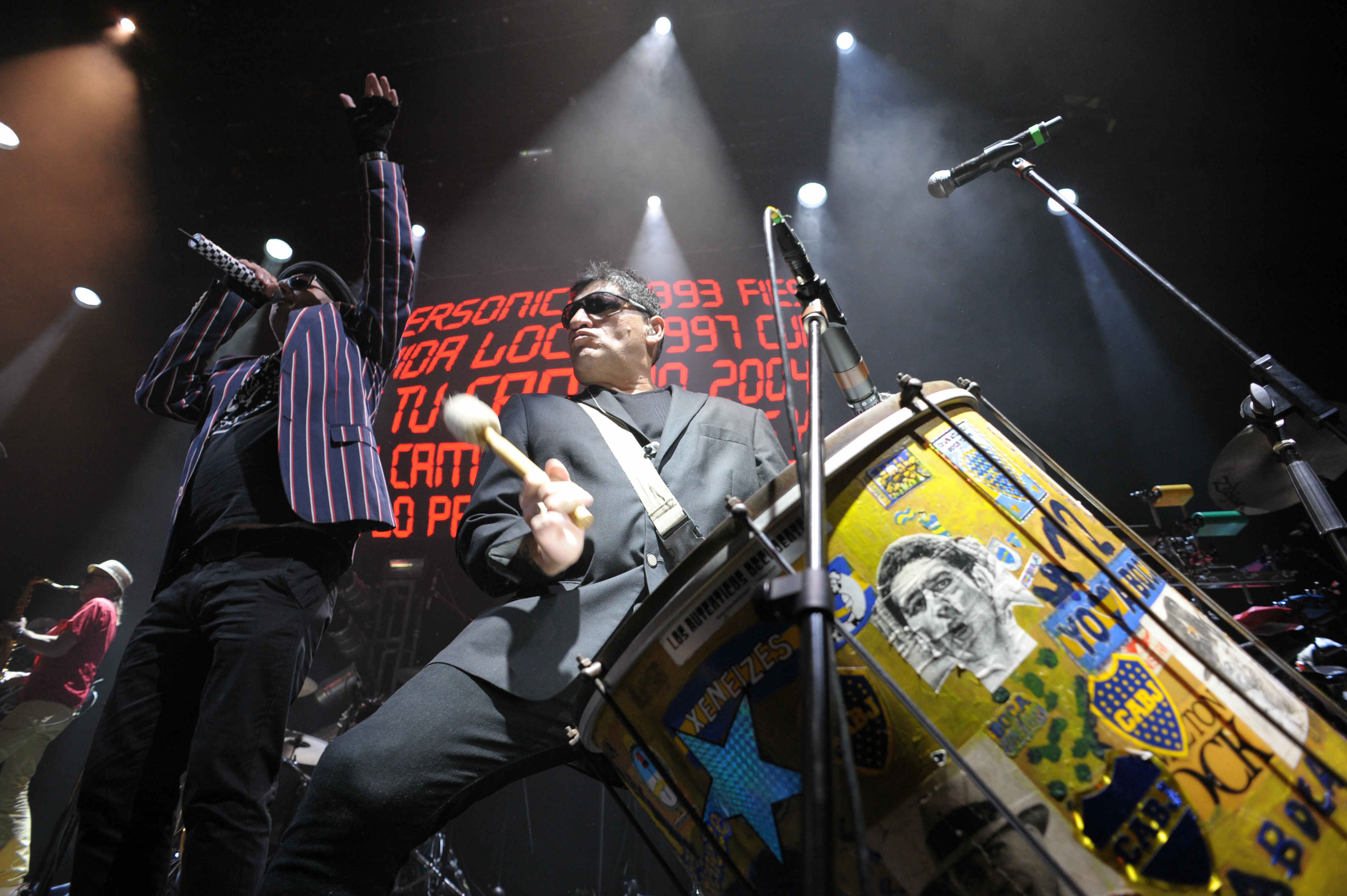 Los Auténticos Decadentes, saliendo uno a uno y saludando, una pantalla que proyectaba algunos visuales, algunos vídeos mientras sonaba su introducción y Gustavo Parisi (cucho) agradeciendo por todas las playeras de calaveras que se dejaban ver fue como dio inicio la gran fiesta que desde la primera rola pusieron a bailar y a saltar a todos sus seguidores con «Somos» y poco a poco fueron demostrando porque la primera de dos fechas fue sould out.