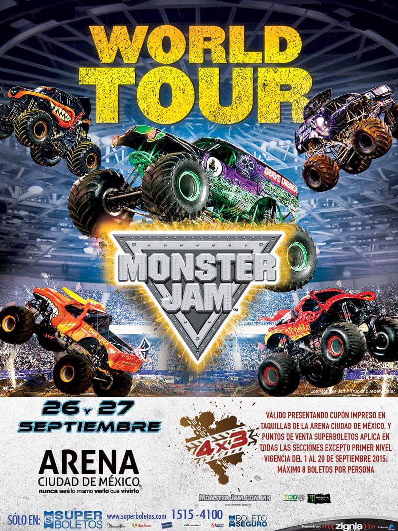 Con 4 metros de alto y 4 metros de largo, los Monster Jam Trucks son máquinas con diseño personalizado que van sobre llantas de 1.60 metros de alto y con un peso total de 4.5 toneladas. Construidos para explosiones cortas de alta potencia, generando también de 1,500 a 2,000 caballos de fuerza y son capaces de alcanzar velocidades de hasta 120 km/h pueden volar hasta 10 m. de alto y 40 m. De distancia equivalente a juntar 14 coches uno junto a otro.