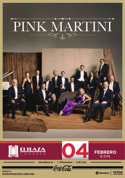Tras agotar las entradas para sus conciertos del 2012 y 2013, Pink Martini regresan a El Plaza Condesa para ofrecer una íntima y vibrante presentación con lo mejor de la música del mundo. Esta exploración musical por géneros tan diversos como el jazz y el pop antiguo aderezado con notas de salsa, tango, samba, chanson, bossa nova y folk invitará a los amantes de la buena música a disfrutar de este encuentro que tendrá lugar el próximo 4 de Febrero de 2016.