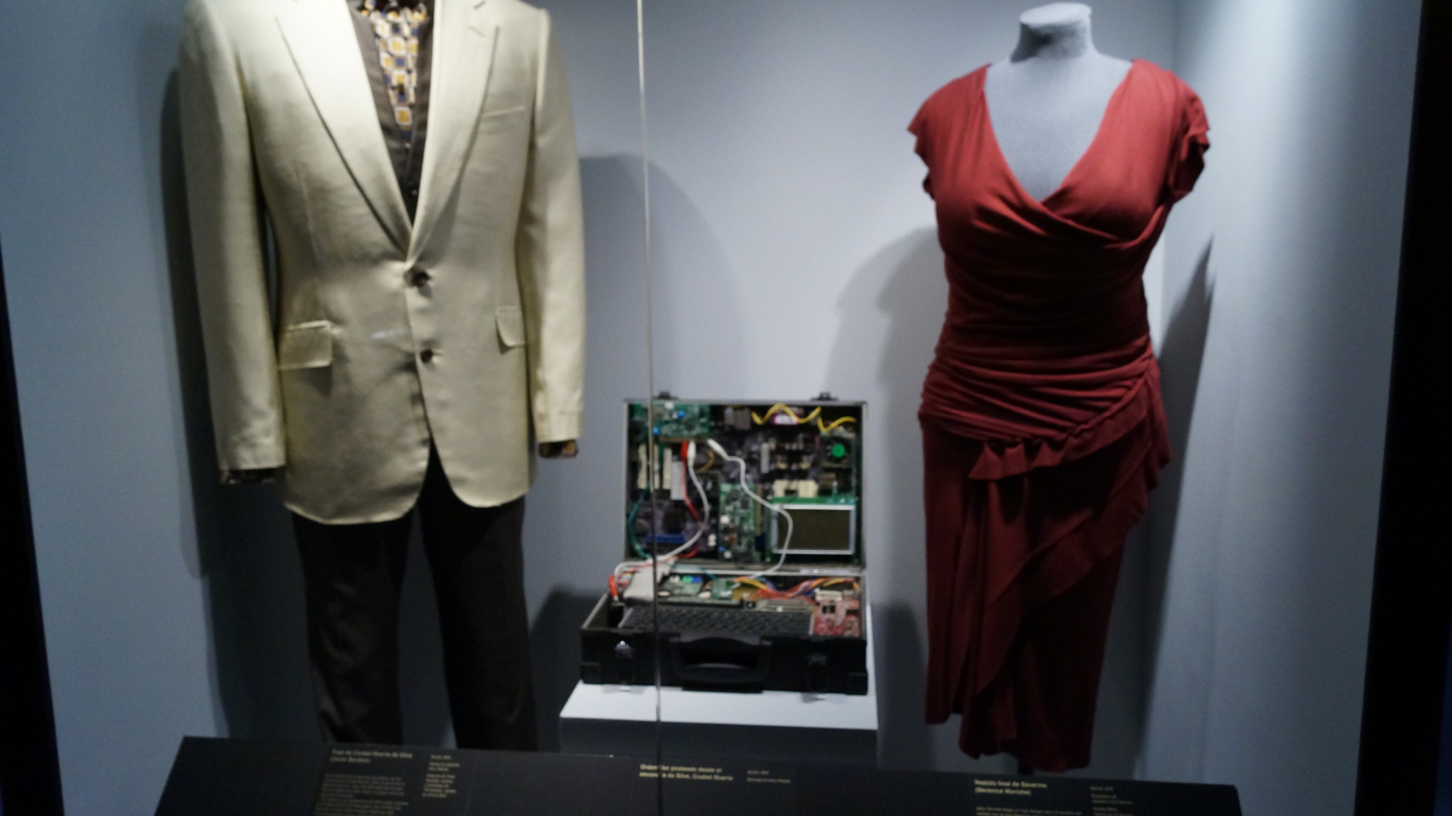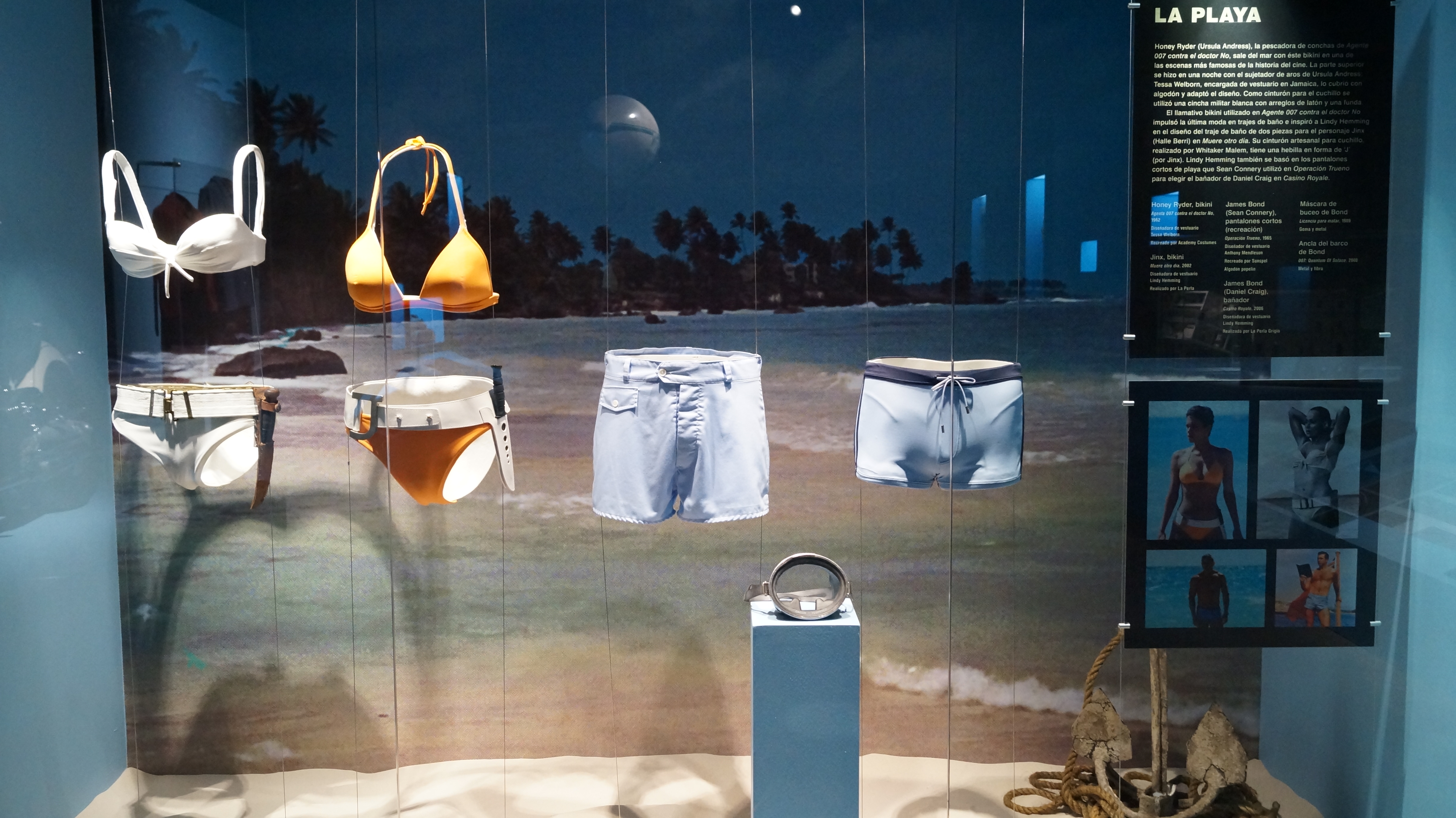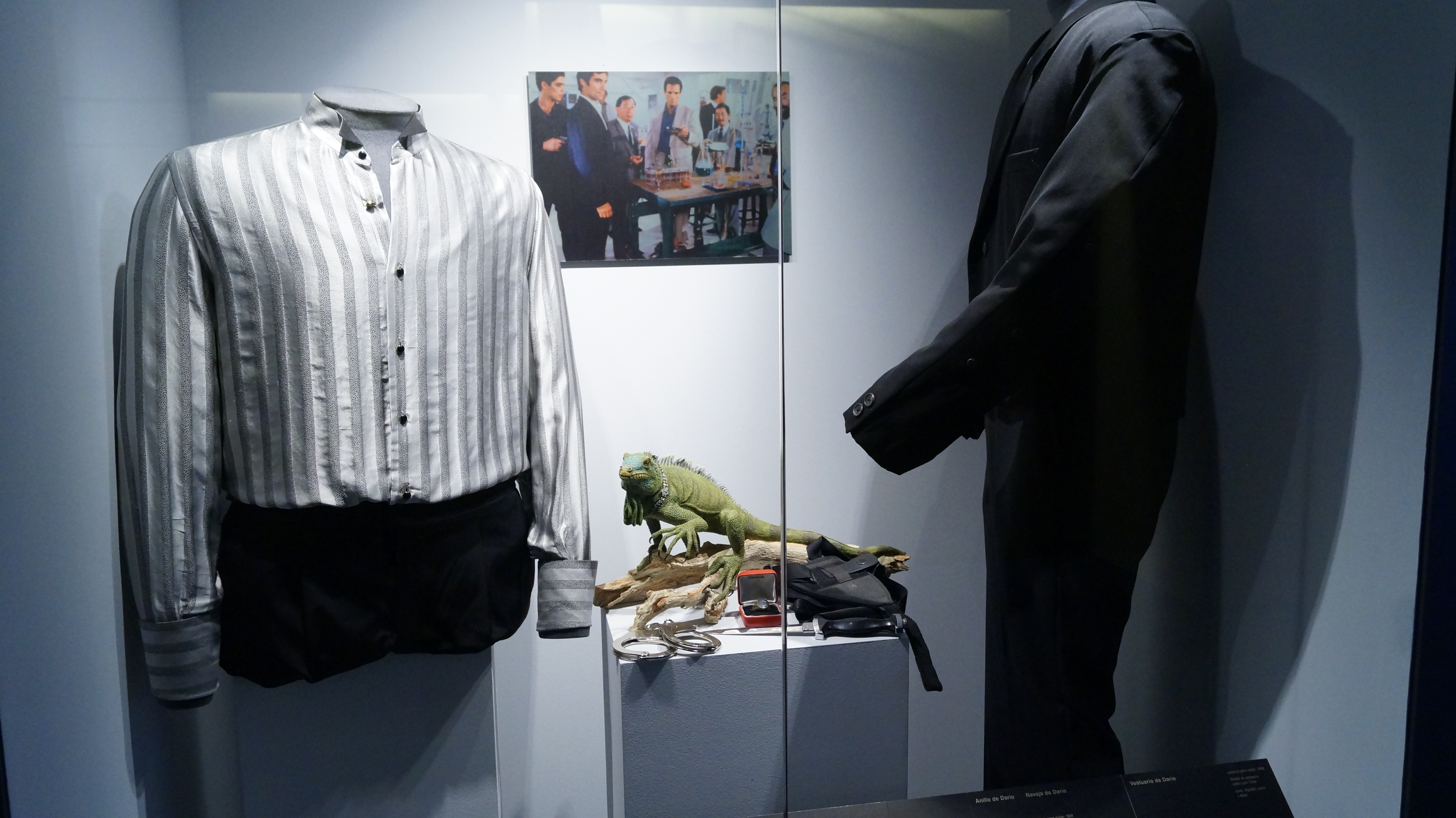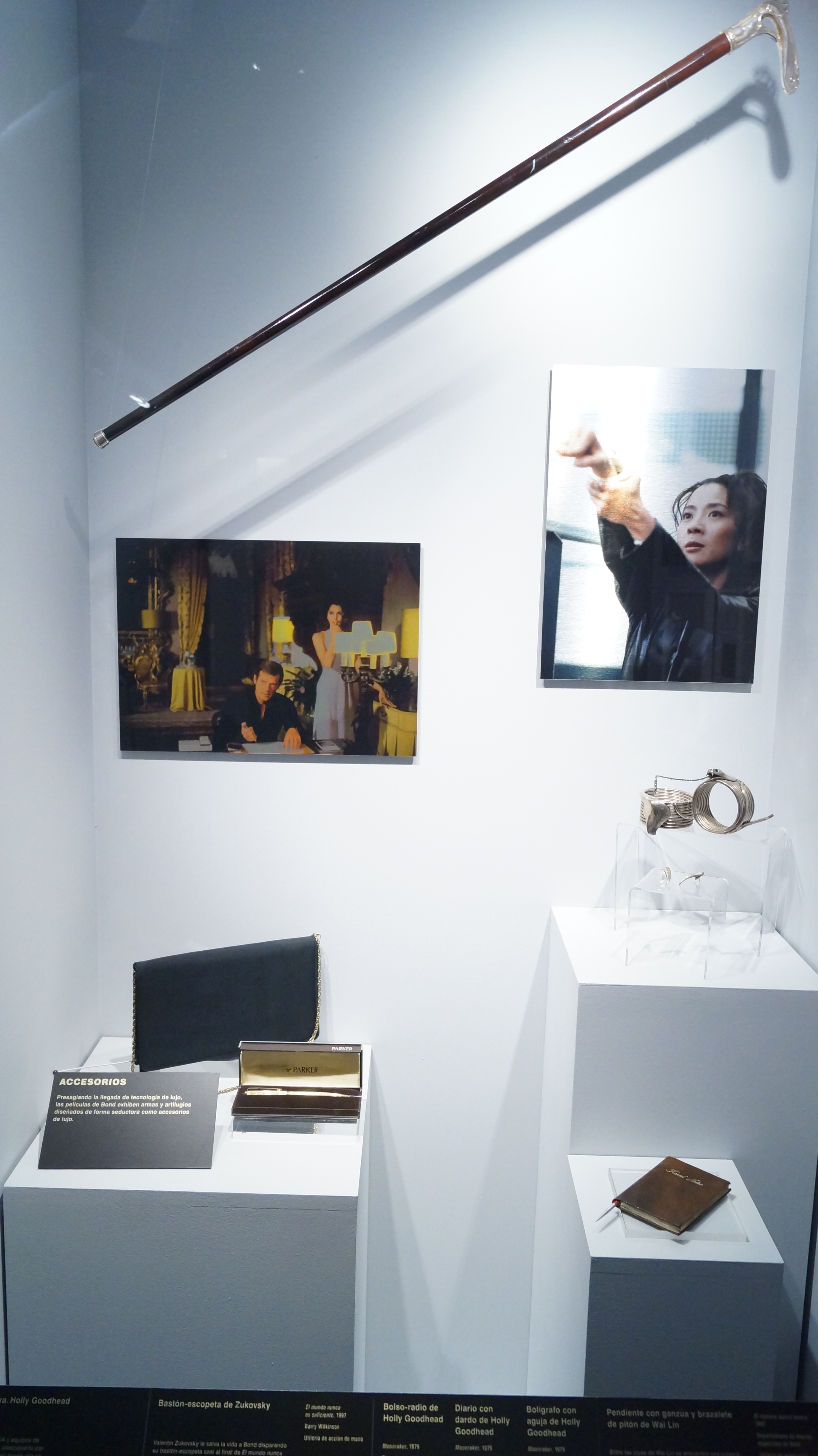 El resultado es una exquisita muestra multisensorial que logra que el espectador este inmerso en el mundo de elegancia, lujo, glamour, acción y estilo que por más de 50 años se han presentado en la gran pantalla, acompañada con extractos de audio y video, piezas únicas y originales, elementos de vestuario, guiones, borradores y bocetos, armas,fotografías y más.