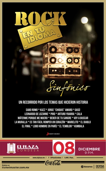 Uno de los sucesos más importantes del rock en español está por llegar a El Plaza Condesa. Se trata del proyecto Rock en tu idioma sinfónico, el cual revive los temas que marcaron a más de una generación. Este acontecimiento tendrá lugar el próximo 8 de Diciembre.