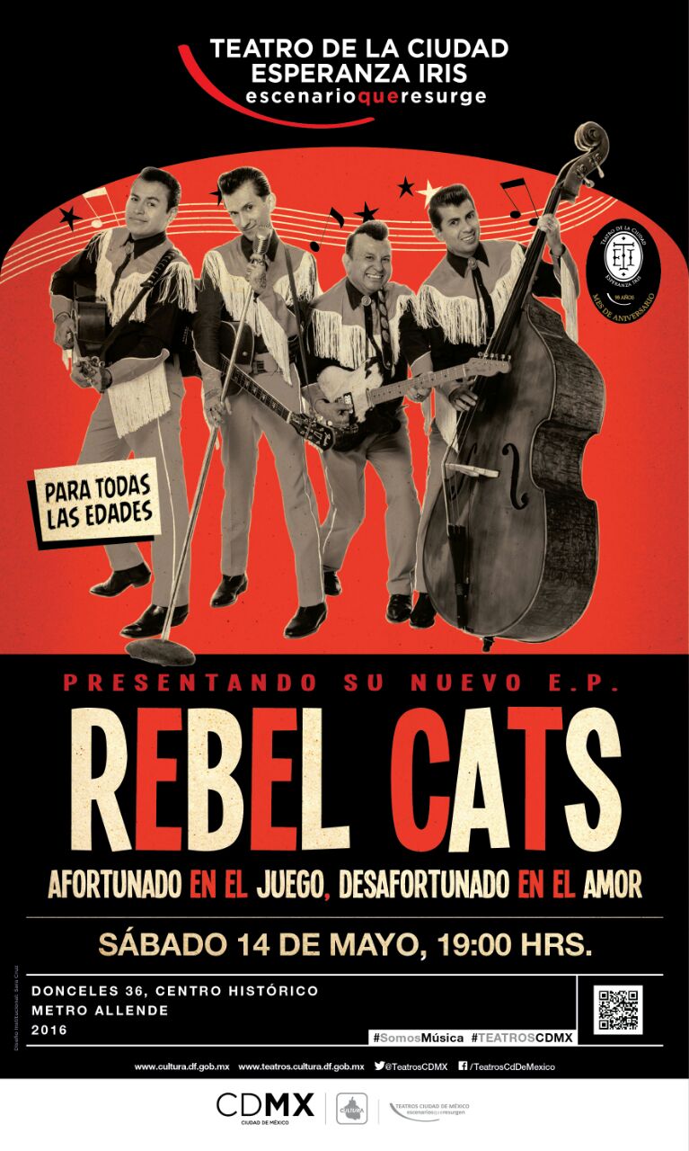 Rebel Cats tendrán este sábado 14 de mayo la presentación de su nuevo EP en el Teatro de la Ciudad Esperanza Iris, boletos en taquilla (-50% con credencial de estudiante) y en Ticketmaster, para todas las edades!