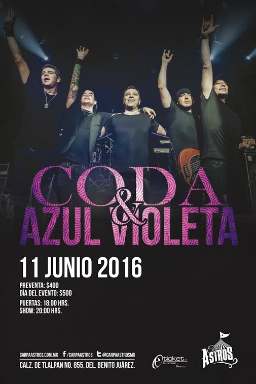La noche del sábado 11 de junio, las instalaciones de la Carpa Astro atestiguarán la presencia de estas míticas bandas, Coda y Azul Violeta, quienes tocarán sus más grandes éxitos, así como temas de sus nuevas producciones. Los boletos se encuentran a la venta en las taquillas del inmueble y en el Sistema E-Ticket.