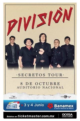 División Minúscula, la banda más respetada del punk rock mexicano, se encuentra lista para retornar a los escenarios de la Capital. Para esta nueva aventura sonora, los oriundos de Matamoros, Tamaulipas, harán una escala de su Secretos Tour en las instalaciones del Auditorio Nacional, lugar que pisarán por vez primera en su carrera. La cita para este electrizante show será el sábado 8 de octubre. La preventa Banamex se realizará los días 3 y 4 de junio. Mientras que la venta al público en general comenzará el 5 de junio en las taquillas del inmueble y a través del Sistema Ticketmaster.