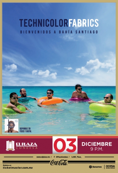 Technicolor Fabrics está de regreso con su más reciente producción, “Bahía de Santiago”, es por ello que ya preparan una exclusiva presentación en uno de los escenarios más importantes de la Ciudad de México, El Plaza Condesa. Este espectáculo servirá para cerrar con broche de oro la gira 2016 por el territorio mexicano y hacer un recorrido musical por sus cerca de diez años de carrera en la que incluirán temas en vivo de su nueva placa discográfica. El reencuentro con sus fans será este 3 de Diciembre y los boletos estarán a la venta a partir del Jueves 4 de Agosto en taquillas y la red Ticketmaster.