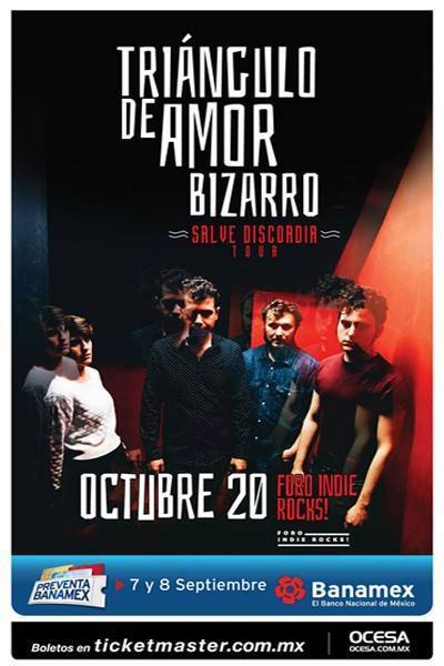 El shoegaze e indie rock de la banda gallega Triángulo de Amor Bizarro, integrados por Rodrigo, Isa, Rafa y Zippo, se escuchará con todo su poder en la CDMX el próximo jueves 20 de octubre cuando los creadores de temas como Seguidores y De la monarquía a la criptocracia hagan acto de presencia sobre el escenario del Foro Indie Rocks el próximo jueves 20 de octubre. La preventa Banamex se realizará los días 7 y 8 de septiembre. Mientras que la venta al público en general comenzará a partir del 9 de septiembre en las taquillas del inmueble y a través del Sistema Ticketmaster.
