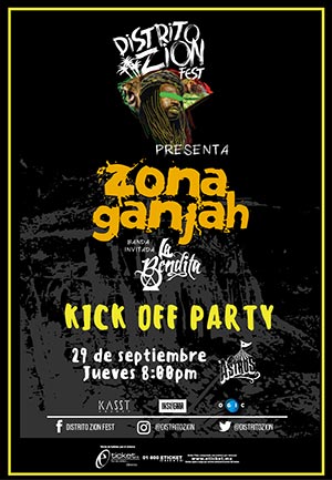 Prepárate para vivir el festival más grande de reggae en la CDMX. Obtén acceso a la Kick Off Party donde tocará Zona Ganjah el 29 de Septiembre en la Carpa Astros. ¡No te quedes fuera de este gran evento! #DistritoZion
