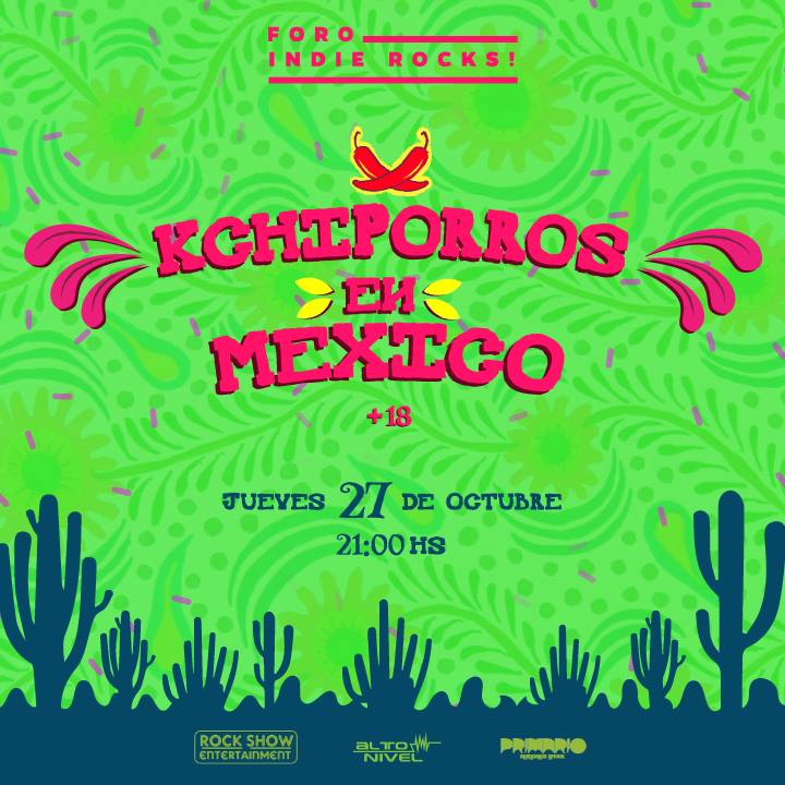La fiesta regresa a México de la mano de los emblemáticos paraguayos Kchiporros, quienes con motivo del lanzamiento de su nuevo sencillo “Sistema Solar” se presentarán en el Foro Indie Rocks este Jueves 27 de Octubre a las nueve de la noche, con el objetivo de hacer vivir a sus seguidores una noche intensa, que incluya lo mejor que tienen en su repertorio que presentará sorpresas en esta nueva vuelta como parte de su gira “Los Ojos Rojos Tour”, demostrando porqué es una de las mejores bandas de la escena ska latinoamericana en la actualidad. Es así que Kchiporros están listos para ofrecer todos sus éxitos el próximo Jueves 27 de Octubre en el Foro Indie Rocks! a partir de las nueve de la noche. Los boletos se encuentran a la venta en las taquillas del inmueble, Tienda PRIMARIO y en el Tianguis del Chopo.