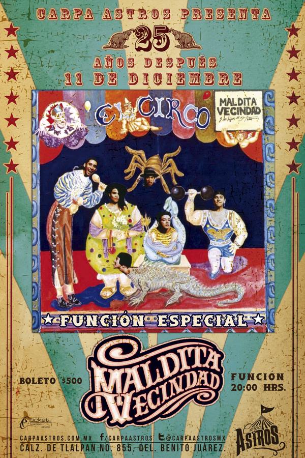 La Maldita Vecindad y Los Hijos del 5to Patio regresan a la Carpa Astros después de 25 años para celebrar el emblemático disco «El Circo» y su celebración se unirá al festejo del Primer aniversario de la Carpa y 25 años de «El Circo» este próximo 11 de diciembre y queremos que todos ustedes sean parte de este día tan especial.