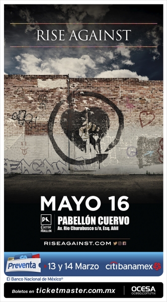 Hoy la banda estadounidense de punk rock RISE AGAINST anuncia que ofrecerá un concierto en la Ciudad de México el próximo 16 de mayo del 2017 en el recién inaugurado Pabellón Cuervo. Tim McIlrath (voz principal y guitarra), Zach Blair (guitarra y coros), Joe Principe (bajo) y Brandon Barnes (batería) regresarán al país tras su última visita en 2010 cuando se presentaron en el Festival Vive Latino.