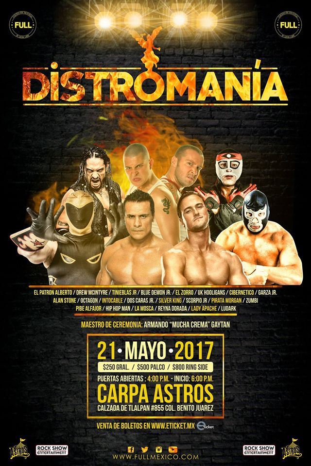 Federación Universal de Lucha LibreFULL, la imagen de la empresa y una nueva experiencia en el pancracio nacional. FULL Presenta: DISTROMANIA Carpa Astros CDMX 21 de Mayo de 2017 a las 6:00 PM