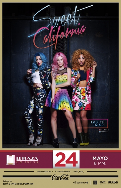El trío español Sweet California llegará a la Ciudad de México este próximo 24 de Mayo para una íntima presentación en El Plaza Condesa, lo anterior como parte de la gira “Ladies Tour 2017”. Los boletos estarán a la venta general a partir del Lunes 10 de Abril a las 12 hrs. en taquillas del inmueble y la red Ticketmaster en http://www.ticketmaster.com.mx y al teléfono 53-25-9000.
