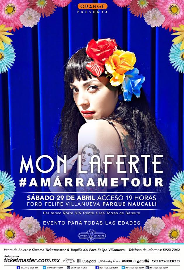 Tras cautivar a los asistentes en el Vive Latino y prepararse para salir de gira por América, la cantante, compositora e instrumentista chilena Mon Laferte, hace un pausa en Parque Naucalli este 29 de abril, como parte de su gira #AmárrameTour para presentar su nuevo sencillo “Amárrame” que será parte de su próxima placa discográfica.