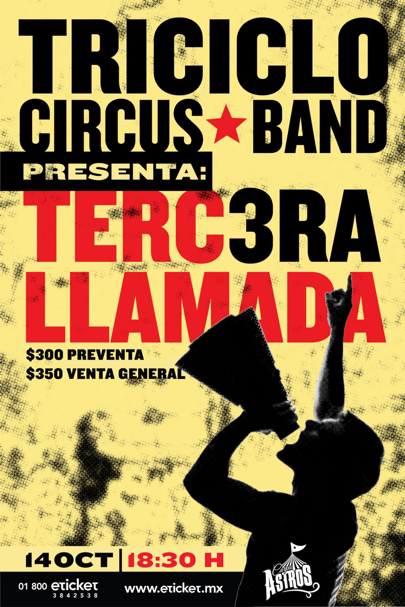 Después de más de tres años sin novedad discográfica, regresa Triciclo Circus Band a presentar con bombo y platillo “Tercera Llamada”, el cual tendrá como lugar de lanzamiento La Carpa Astros, el próximo sábado 14 de octubre. La preventa comienza este jueves 15 de junio y los podrás adquirir en las taquillas de la Carpa Astros o en el sistema Eticket