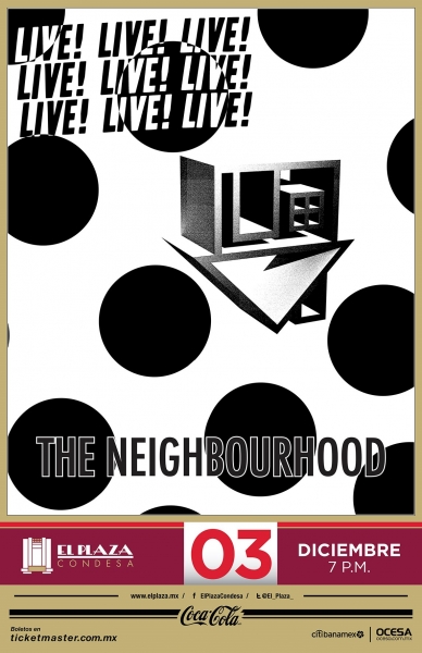 The Neighbourhood (THE NBHD) es un grupo de rock alternativo compuesto por el vocalista Jesse Rutherford, los guitarristas Jeremy Freedman y Zach Abels, el baterista Brandon Fried y el bajista Mikey Margott. La agrupación californiana estará de visita en la Ciudad de México para ofrecer una exclusiva presentación el próximo 3 de Diciembre en El Plaza Condesa. Los boletos estarán disponibles en venta general a partir del Viernes 4 de Agosto a las 12 hrs. en taquillas del inmueble y la red Ticketmaster en http://www.ticketmaster.com.mx y al teléfono 53-25-9000.