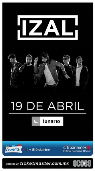Izal, uno de los grupos más exitosos de la escena indie de España, regresarán a nuestro país para presentar de manera oficial el que será su nuevo trabajo discográfico llamado Autoterapia. La fecha pactada para esta energética y explosiva velada será el jueves 19 de abril y qué mejor marco para este show que en las instalaciones del Lunario del Auditorio Nacional. La preventa citibanamex se realizará los días 14 y 15 de diciembre.Mientras que la venta al público en general comenzará a partir del 16 de diciembre en las taquillas del inmueble y en el Sistema Ticketmaster.