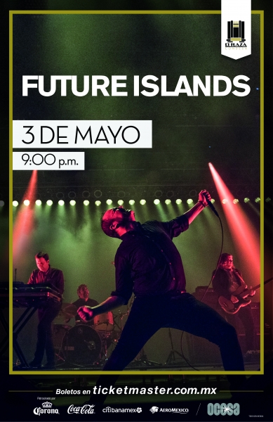 El trío estadounidense Future Islands llegará a la Ciudad de México para presentar su más reciente álbum “The Far Field” el próximo 3 de Mayo en El Plaza Condesa. Los boletos estarán disponibles en venta general a partir delViernes 16 de Febrero a las 9 de la mañana en taquillas del inmueble y la red Ticketmaster en http://www.ticketmaster.com.mx y al teléfono 53-25-9000.