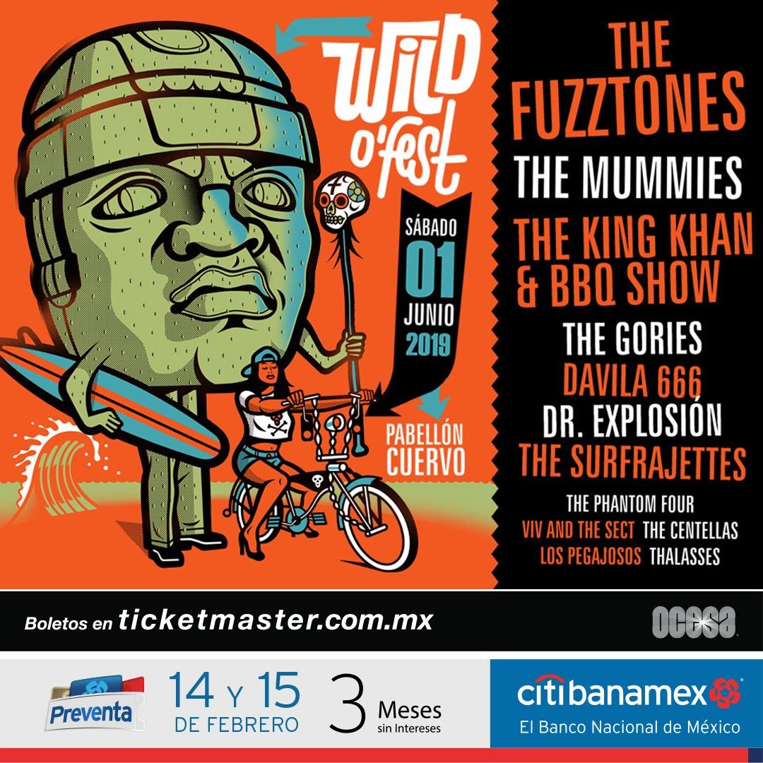 OCESA, la promotora más importante de México y Latinoamérica, en conjunto con Superbookers y Talento de Casa, se complacen en presentar para todos los amantes del surf y garage, la cuarta edición del festival Wild O’Fest, que se ha convertido en el más importante en su tipo tanto de México y Latinoamérica. La fecha pactada para el baile y buena música será el sábado 1º de junio en las instalaciones del Pabellón Cuervo. La preventa Citibanamex se realizará el 14 y 15 de febrero. Mientras que la venta al público en general comenzará el 16 de febrero en las taquillas del inmueble y a través del Sistema Ticketmaster.
