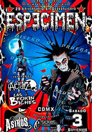 La banda mas emblemática del punk rock mexicano ofrecerá en exclusiva un concierto de 29 aniversario en la gran carpa astros de la CDMX, un evento realizado bajo una producción con un show para todas las edades, alternando con dos bandas Acidez + Las Fokin Biches importantes de la escena actual, este evento será filmado para video documentarlo. Boletos disponibles en sistema E-Ticket y en las taquillas del lugar.