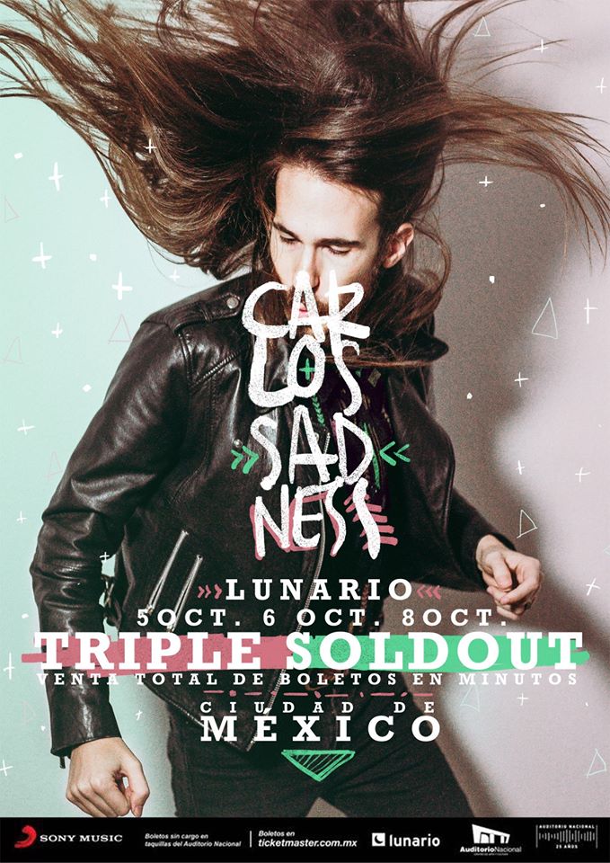 Luego de agotar en tiempo récord tres fechas en el Lunario de la Ciudad de México (5, 6 y 8 de octubre), Carlos Sadness anuncia un concierto más en su primera gira mexicana: viernes 7 de octubre, en el C3 Stage de Guadalajara. La venta de boletos (que podrán ser generales o con acceso a meet and greet) inició el miércoles 24 de agosto, a las 11:00 horas, en http://www.superboletos.com y en los locales de Soul Flower y Addictive Tattoo.